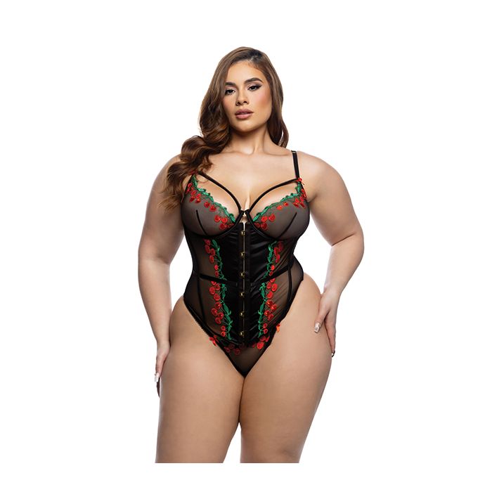 Cherry Delight Embroidered Underwire Corset w/G-String