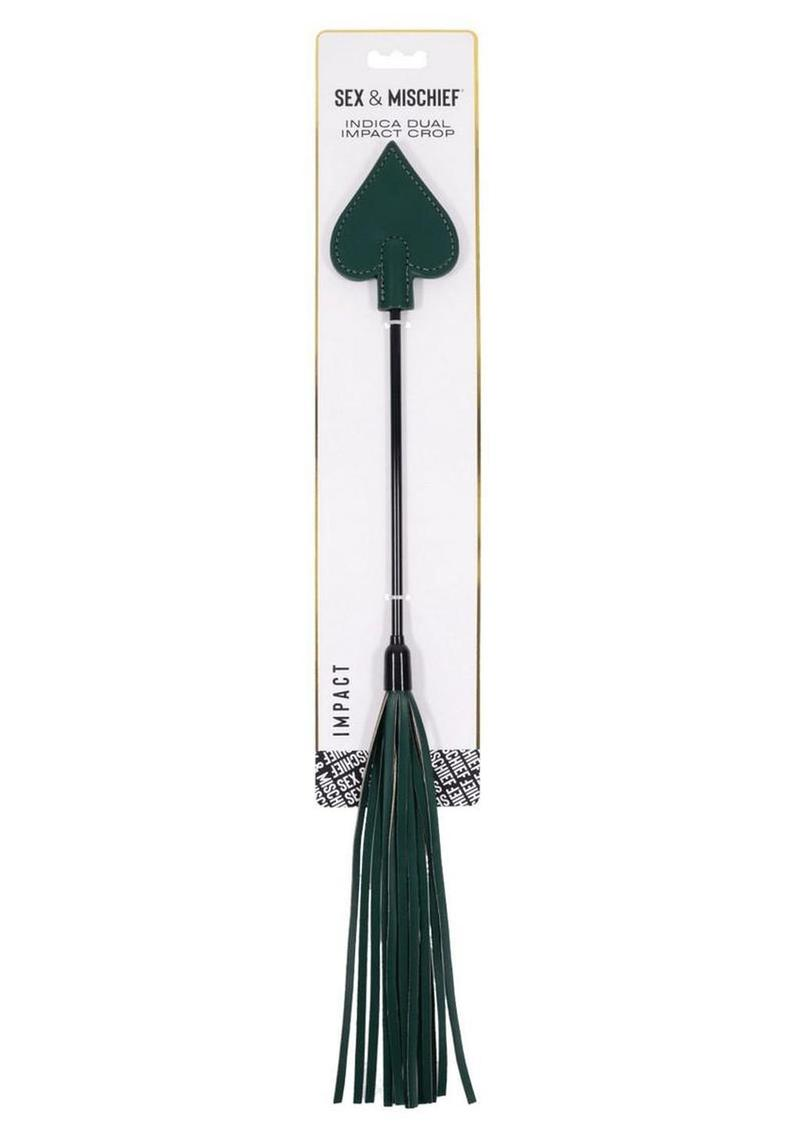Two sensations. One seductive toy. The Indica Dual Impact Crop features a firm spade tip for crisp slaps and faux leather falls for a teasing sting. Start slow with a gentle flick or turn up the intensity—this versatile crop invites you to explore a full range of impact play. Its emerald green design and gold detailing make every scene feel like a special occasion.