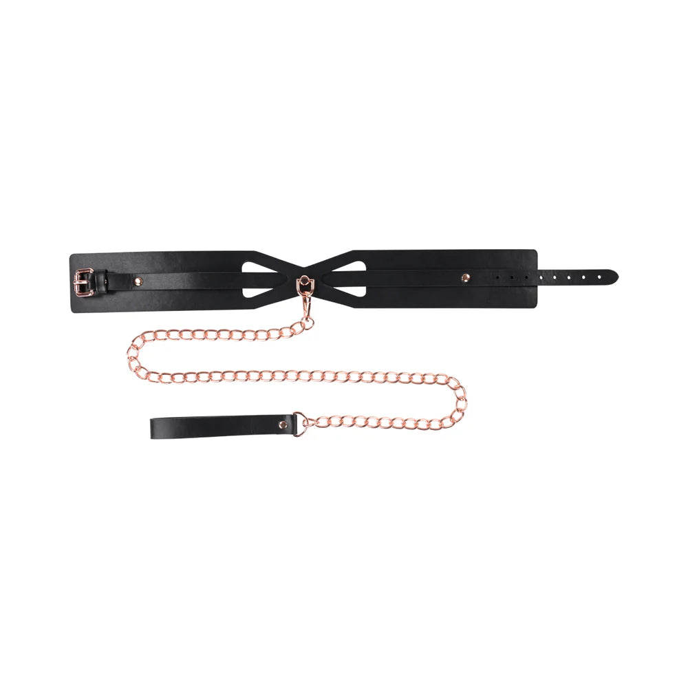 We don't have to tell you that rules were made to be broken. Show them the fun of not doing what you're told with the Brat Collar & Leash. With corset-like cutouts and an elegant rose gold chain, you might just say 'please.' The easy clip allows for quick release of the chain and collar for passionate position changes.