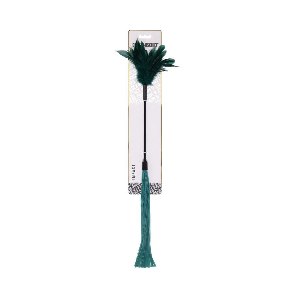 Explore the art of contrast. The Indica Feather Tickler is a dual-ended tool that teases and tantalizes with every stroke. One side features soft green feathers for delicate sensory play, while the other delivers a light sting with flexible silicone falls. Use it to awaken nerve endings, set the mood, or surprise your partner with an unexpected switch in sensation. It's a two-in-one treat designed for touch you won't forget.