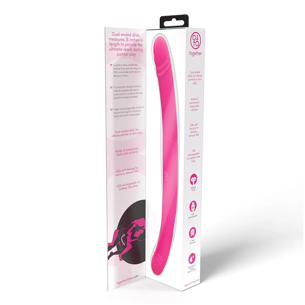 Duo Together is made of silky soft, body-safe silicone, and is malleable, so you can bend it to fit the unique anatomies of you and your partner coming together. Youft.ll enjoy targeted stimulation from both ends of the shaft and 9 vibration modes and 9 thrusting modes that move in time with the rhythm of you and your partner. Made of silky soft, body-safe silicone, this versatile toy has a malleable shaft that moves with both partners as its extended length provides the perfect reach and also allows for maintaining eye contact during intercourse, thus encouraging intimacy while maximizing pleasure.
